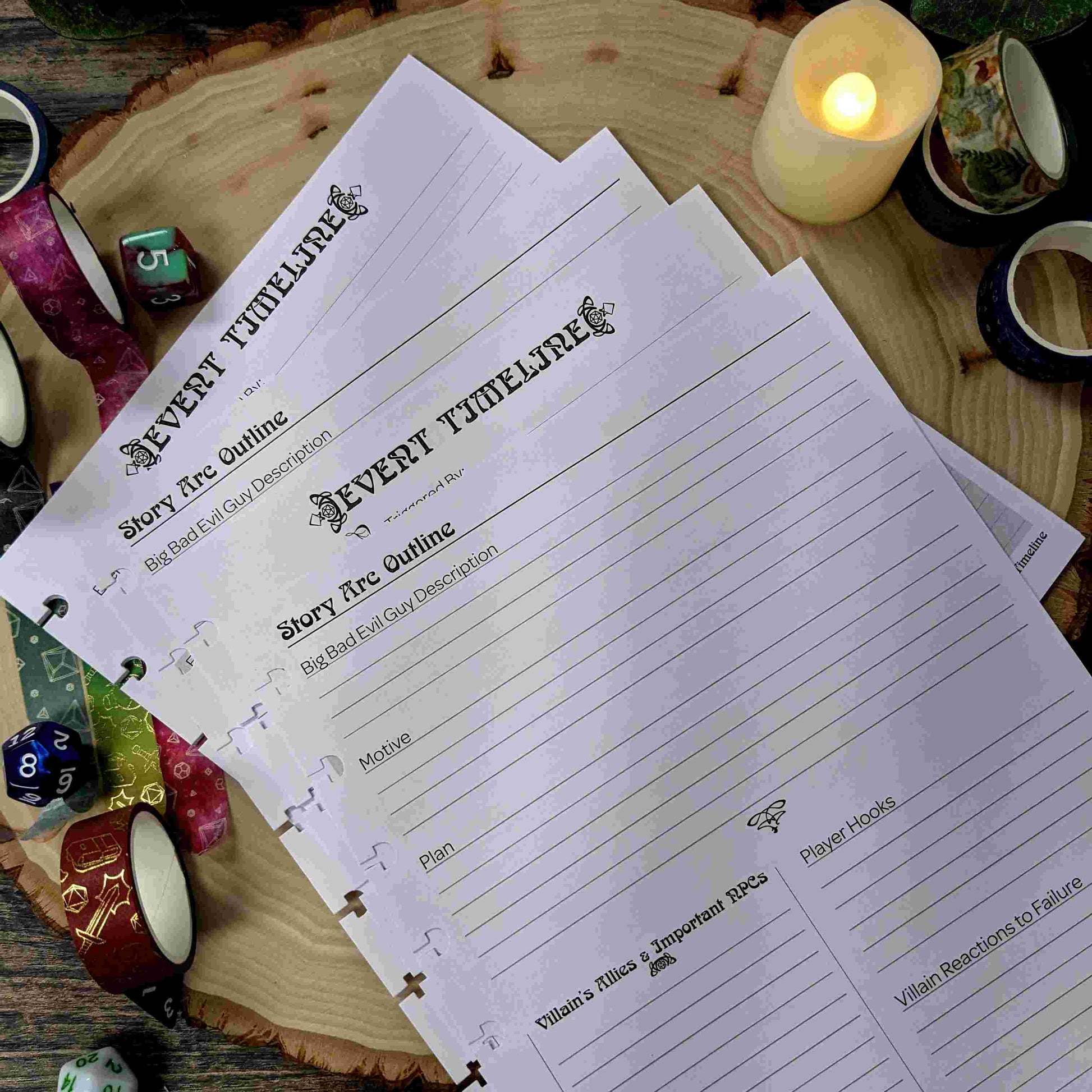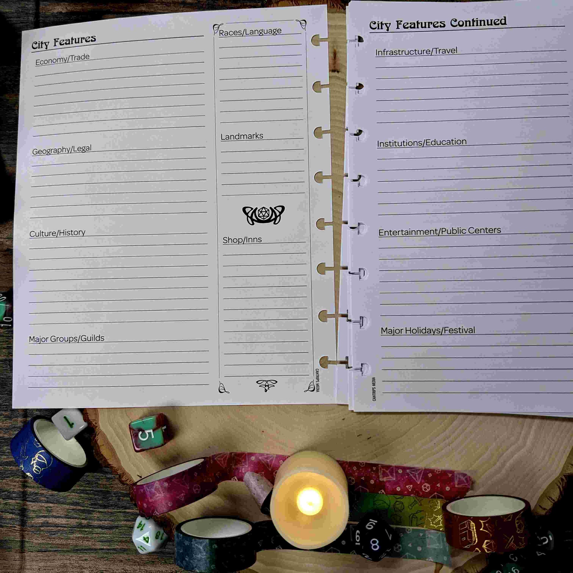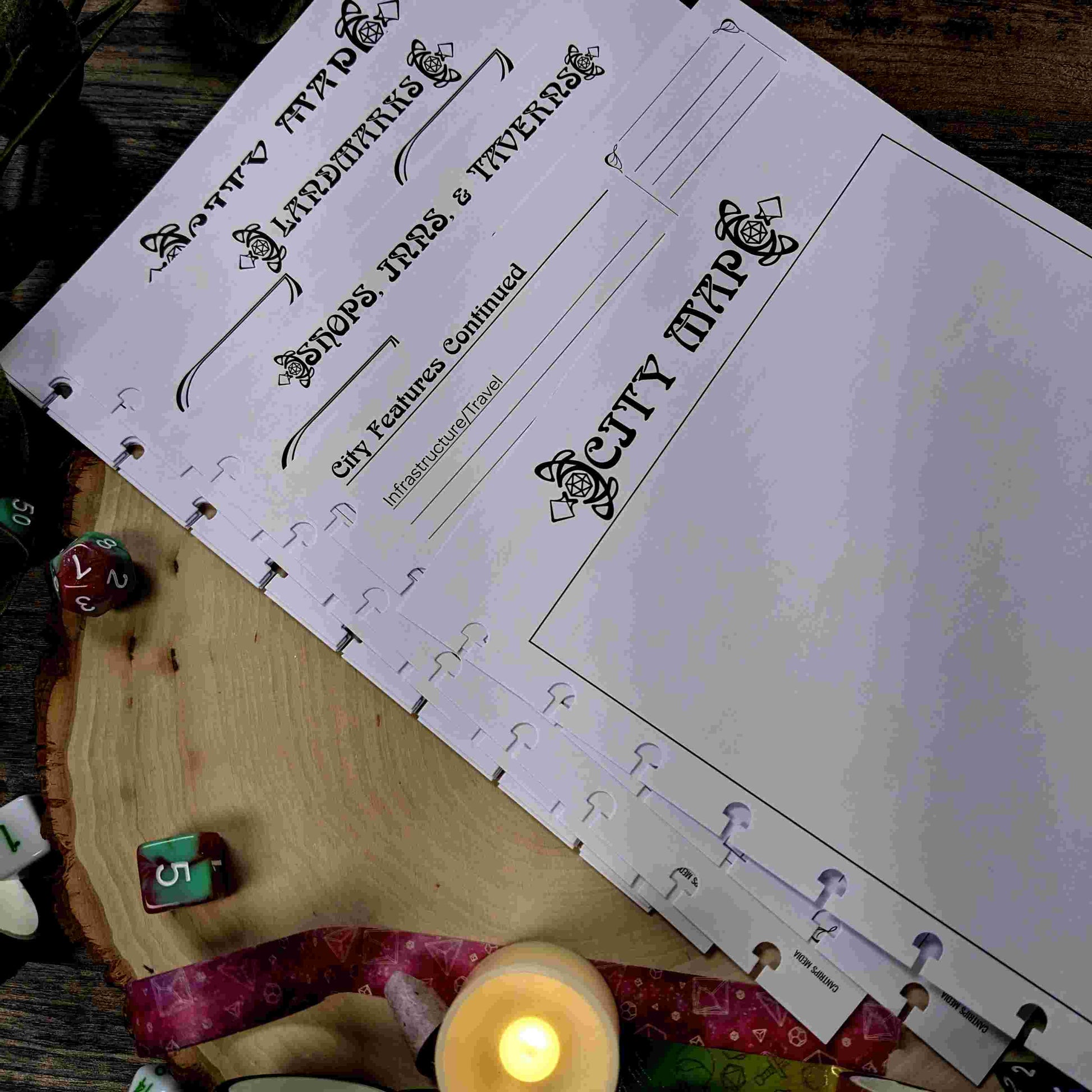 Each set includes 16 sheets of paper (or 32 pages front and back). All pages in this listing are system agnostic, meaning they will work for any of our notebooks no matter what TTRPG you are playing.