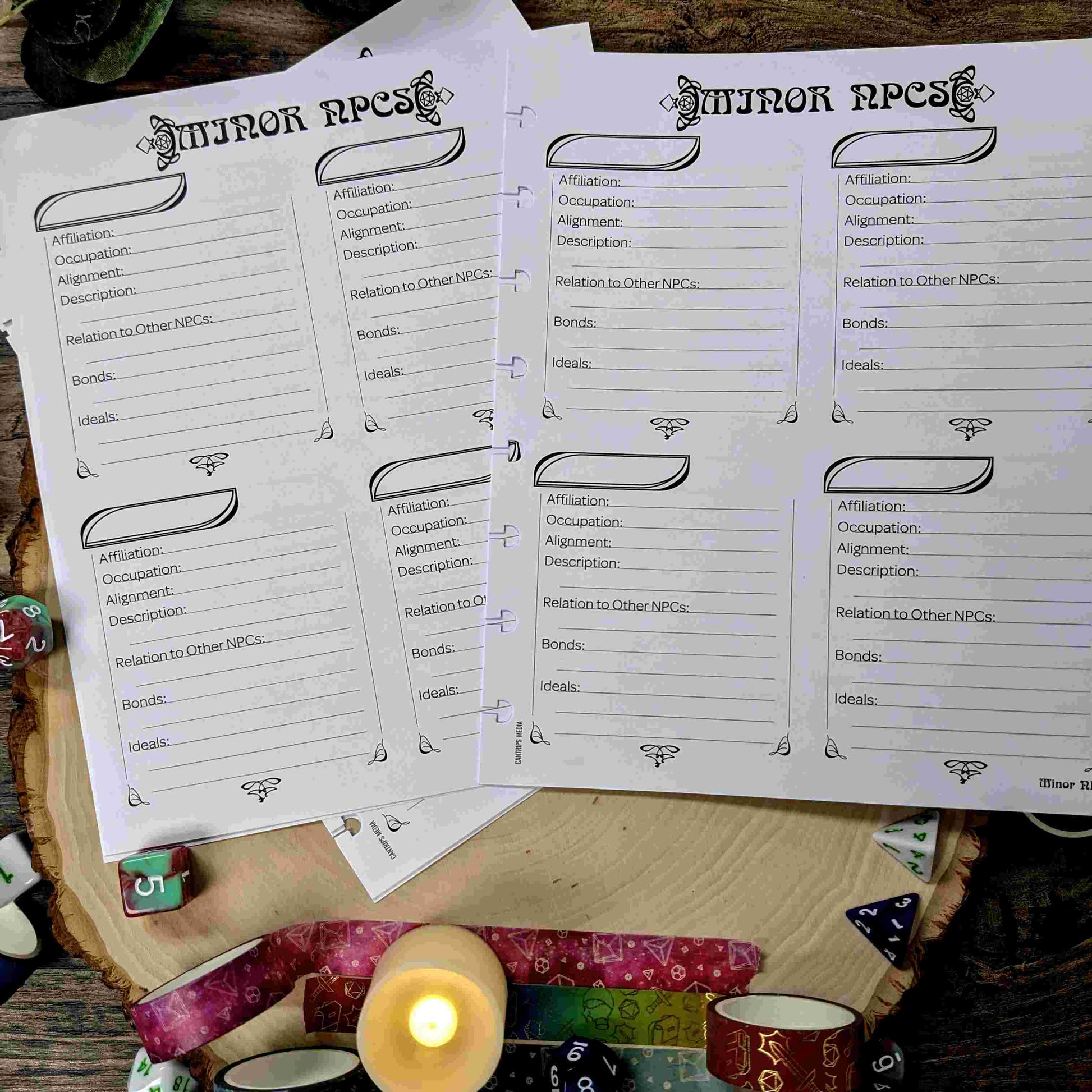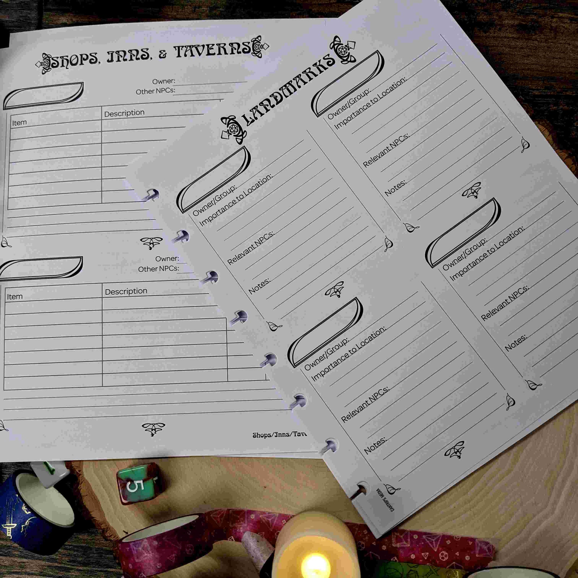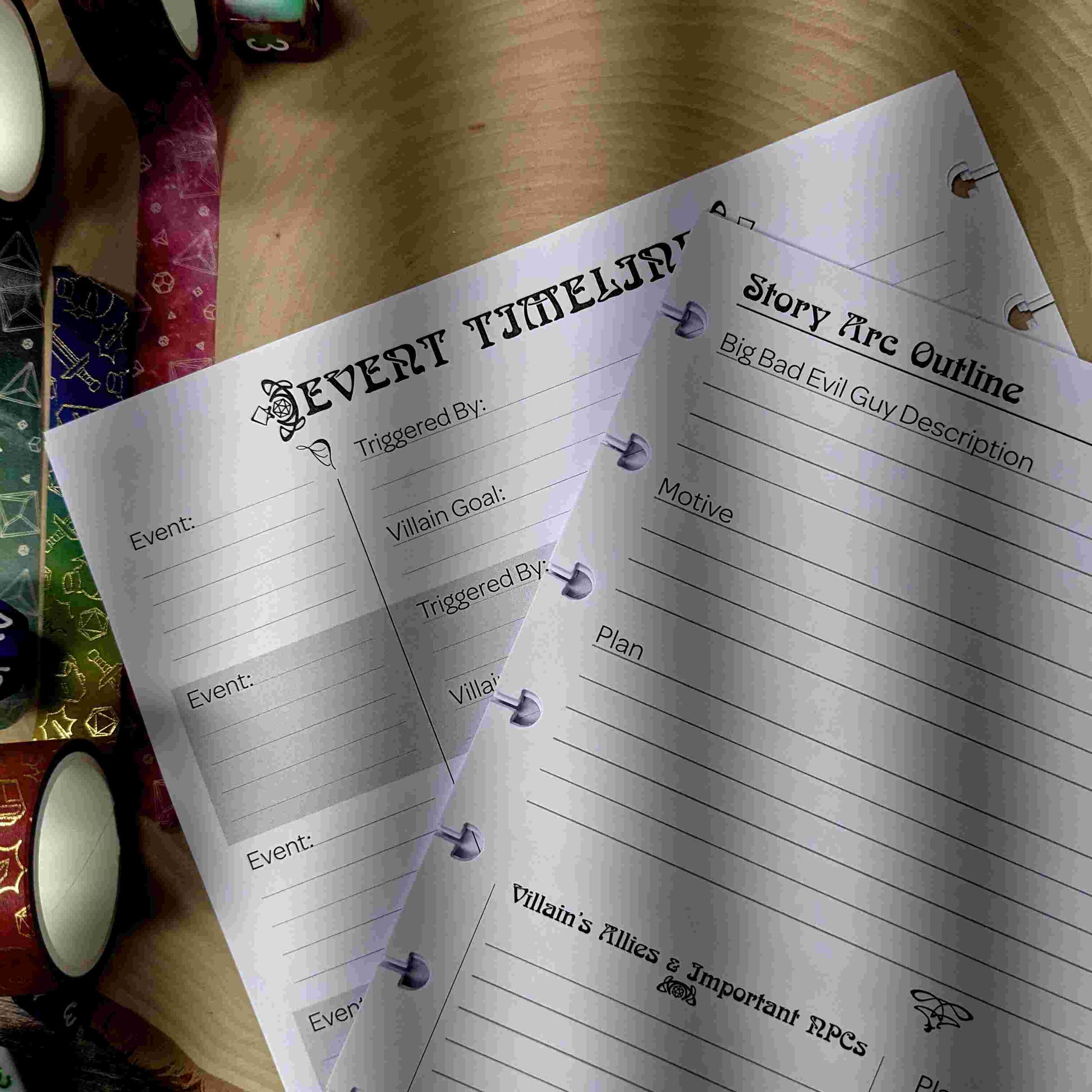 Each set includes 16 sheets of paper (or 32 pages front and back). All pages in this listing are system agnostic, meaning they will work for any of our notebooks no matter what TTRPG you are playing.