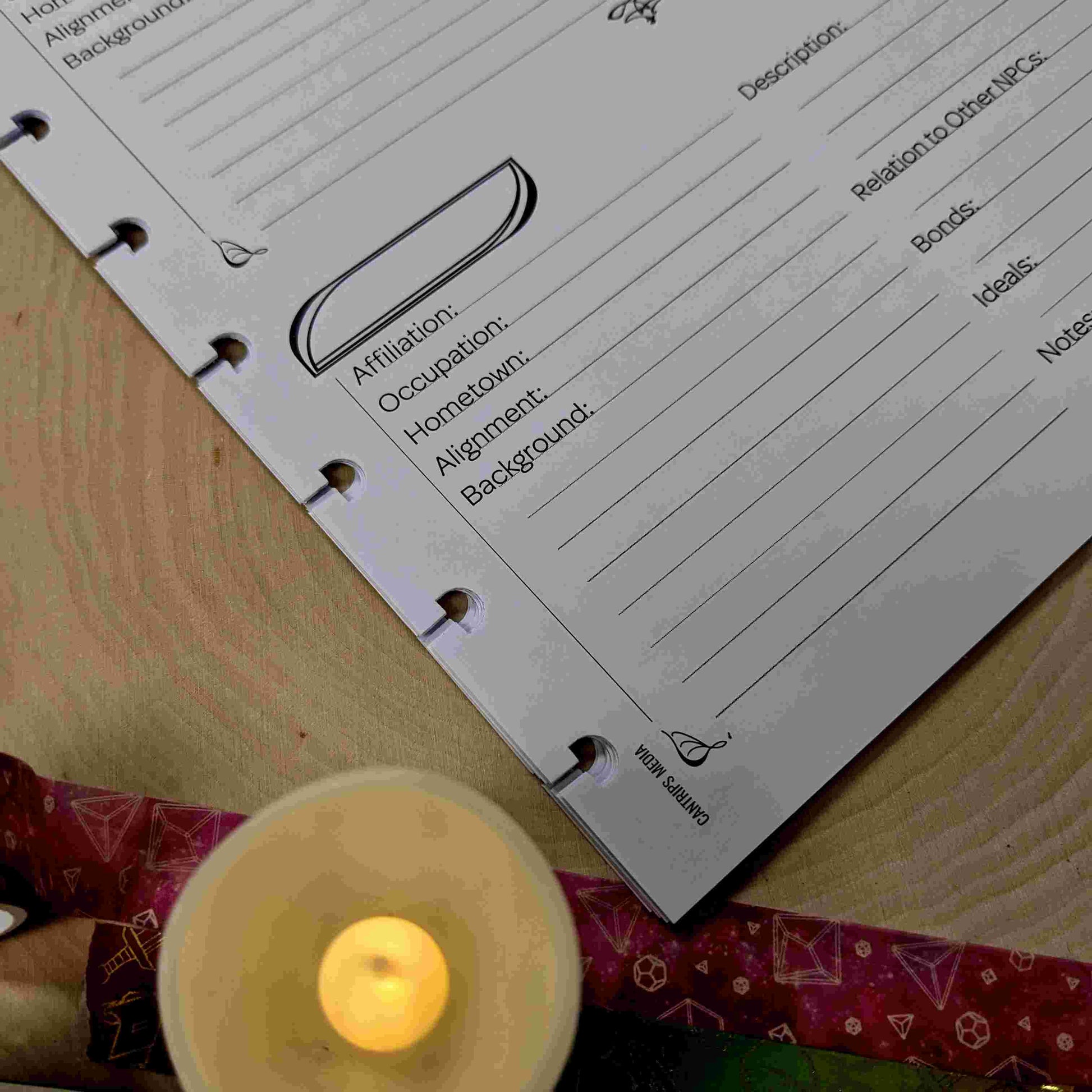 Cantrips Media is owned by me, Kylie. I'm a stationery nerd, but also just a gaming nerd. While acting as Dungeon Master for my campaign, I found the need for more organization. I loved bullet journaling and discbound journals a lot and decided to start creating my own. That's how Cantrips Media was born. I work out of my home near Pittsburgh, PA and am lucky enough to be able to do this full-time. You can learn more about us here.