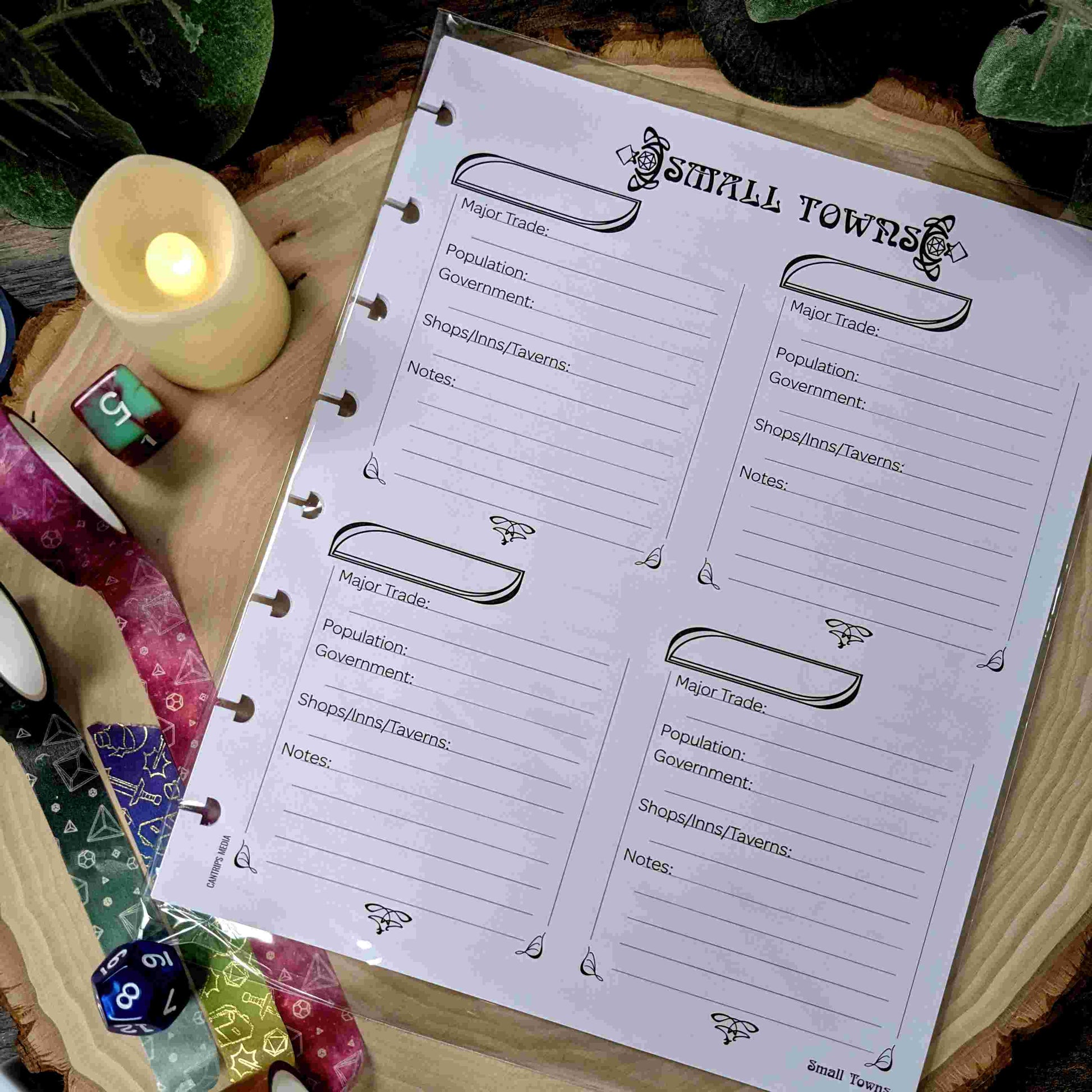 I love the whole concept of the GM book designed by Cantrips Media. The pages really ask you to flesh out the world in a way that makes it feel more real without getting bogged down in unnecessary details. I also love that the pages come as refillable packs so when I move on to another campaign I can shelf the pages that aren’t necessary or have players come back to a town that they’re already familiar with! A+ product and the secret linch pin of my campaign design!